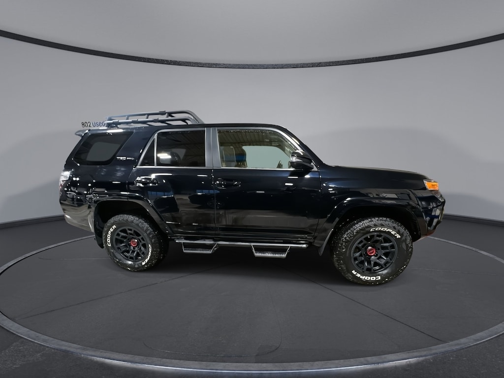 802 Toyota is proud to present you with another True Market Priced Pre-Owned Vehicle. Transparent Pricing Of $ 53602 !! This 2023 Toyota 4Runner TRD Pro Toyota Gold Certified is loaded with the following Factory Options: 4WD and Black/Graphite w/SofTex Seat Trim TRD Pro Package (Black Lug Nuts, Dual Zone Auto Climate Control, Fog Lights, Fox Shocks, Garage Door Opener, Heated Outside Rear-View Mirrors, Moonroof w/Tilt Up & Slide, Multi-Terrain Back Monitor, Roof Rack, TRD Pro All Weather Floor Liner, TRD Pro Badging, TRD Pro Exhaust, TRD Shift Knob, and Wheel Locks), Toyota Gold Certified Certified, 4WD, Black/Graphite w/SofTex Seat Trim, 15 Speakers, 3.727 Axle Ratio, 4-Wheel Disc Brakes, ABS brakes, Air Conditioning, Alloy wheels, AM/FM radio: SiriusXM, Anti-whiplash front head restraints, Apple CarPlay/Android Auto, Auto High-beam Headlights, Auto-dimming Rear-View mirror, Automatic temperature control, Brake assist, Bumpers: body-color, Compass, Door Edge Guards (PPO) (TMS), Driver door bin, Driver vanity mirror, Dual front impact airbags, Dual front side impact airbags, Dual Power Ports/Quick Charge Cable Pkg (PPO) (TMS), Electronic Stability Control, Emergency communication system: Safety Connect (1-year trial), Front anti-roll bar, Front Bucket Seats, Front Center Armrest, Front dual zone A/C, Front fog lights, Front reading lights, Front wheel independent suspension, Garage door transmitter: HomeLink, Heated door mirrors, Heated Front Bucket Seats, Heated front seats, Illuminated entry, Knee airbag, Leather Shift Knob, Low tire pressure warning, Navigation System, Occupant sensing airbag, Outside temperature display, Overhead airbag, Overhead console, Panic alarm, Passenger door bin, Passenger vanity mirror, Power door mirrors, Power driver seat, Power moonroof, Power passenger seat, Power steering, Power windows, Predator Tube Step (PPO) (TMS), Radio: Premium Audio w/JBL, Rear anti-roll bar, Rear seat center armrest, Rear window defroster, Rear window wiper, Remote keyless entry, Roof rack, Security system, SofTex Seat Trim, Speed control, Speed-sensing steering, Split folding rear seat, Spoiler, Steering wheel mounted audio controls, Tachometer, Telescoping steering wheel, Tilt steering wheel, Traction control, TRD PRO Carpet Floor Mats (PPO) (TMS), Trip computer, Variably intermitt