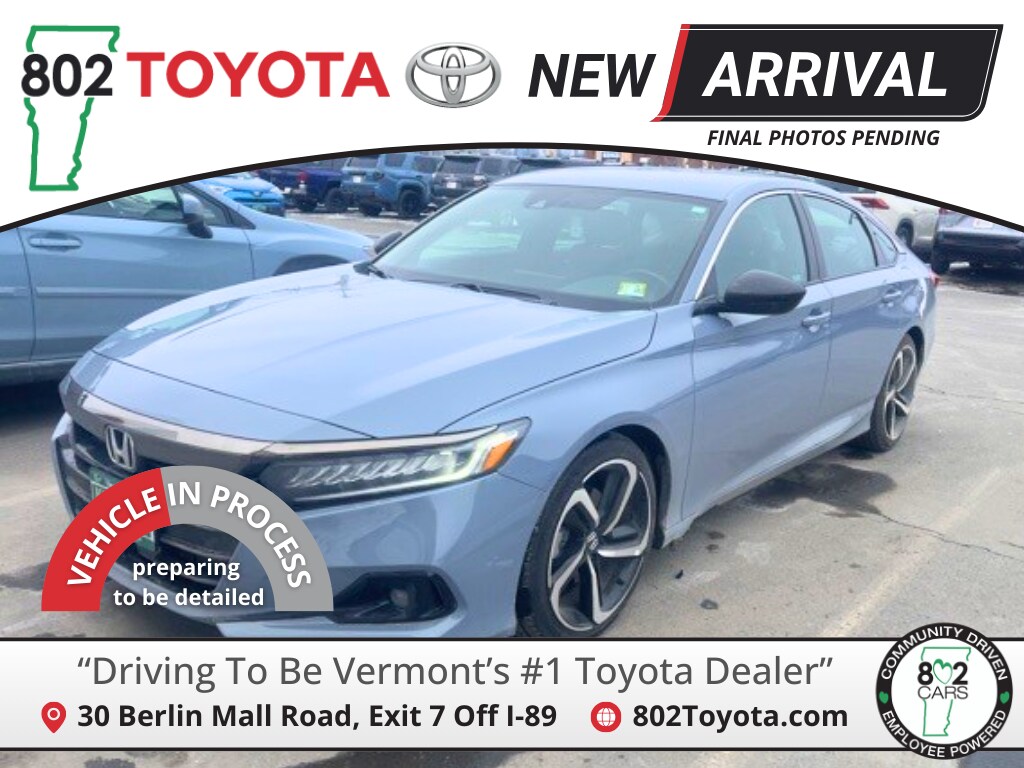 802 Toyota is proud to present you with another True Market Priced Pre-Owned Vehicle. Transparent Pricing Of $ 23402 !! This 2022 Honda Accord Sport is loaded with the following Factory Options: Black w/Fabric w/Synthetic Leather Seat Trim Black w/Fabric w/Synthetic Leather Seat Trim, 4-Wheel Disc Brakes, 8 Speakers, ABS brakes, Adaptive Cruise Control: Adaptive Cruise Control (ACC) with Low-Speed Follow, Air Conditioning, Alloy wheels, AM/FM radio, Apple CarPlay/Android Auto, Auto High-beam Headlights, Automatic temperature control, Brake assist, Bumpers: body-color, Delay-off headlights, Driver door bin, Driver vanity mirror, Dual front impact airbags, Dual front side impact airbags, Electronic Stability Control, Emergency communication system: HondaLink, Exterior Parking Camera Rear, Fabric w/Synthetic Leather Seat Trim, Forward collision: Collision Mitigation Braking System (CMBS) + FCW mitigation, Four wheel independent suspension, Front anti-roll bar, Front Bucket Seats, Front Center Armrest, Front dual zone A/C, Front fog lights, Front reading lights, Fully automatic headlights, Illuminated entry, Knee airbag, Lane Departure Warning System, Leather Shift Knob, Leather steering wheel, Low tire pressure warning, Occupant sensing airbag, Outside temperature display, Overhead airbag, Overhead console, Panic alarm, Passenger door bin, Passenger vanity mirror, Power door mirrors, Power driver seat, Power steering, Power windows, Radio data system, Radio: 180-Watt AM/FM Audio System, Rear anti-roll bar, Rear seat center armrest, Rear window defroster, Remote keyless entry, Security system, Speed control, Speed-sensing steering, Speed-Sensitive Wipers, Split folding rear seat, Spoiler, Steering wheel mounted audio controls, Tachometer, Telescoping steering wheel, Tilt steering wheel, Traction control, Trip computer, Variably intermittent wipers, and Wheels: 19" Machine-Finished Alloy w/Black Inserts!!