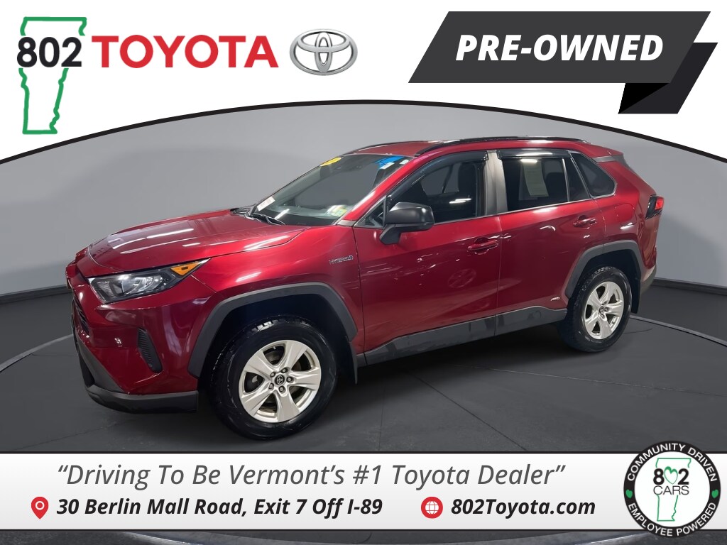 802 Toyota is proud to present you with another True Market Priced Pre-Owned Vehicle. Transparent Pricing Of $ 25702 !! This 2021 Toyota RAV4 Hybrid LE Toyota Certified Used Hybrids is loaded with the following Factory Options: 2.5L 4-Cylinder Toyota Certified Used Hybrids Certified, 2.5L 4-Cylinder, 4-Wheel Disc Brakes, 6 Speakers, ABS brakes, Air Conditioning, Alloy wheels, AM/FM radio: SiriusXM, AM/FM Stereo, Apple CarPlay/Android Auto, Auto High-beam Headlights, Automatic temperature control, Axle Ratio: TBD, Brake assist, Bumpers: body-color, Door Edge Guard (TMS), Driver door bin, Driver vanity mirror, Dual front impact airbags, Dual front side impact airbags, Electronic Stability Control, Emergency communication system: Safety Connect with 1-year trial, Exterior Parking Camera Rear, Fabric Seat Trim, Four wheel independent suspension, Front anti-roll bar, Front Bucket Seats, Front Center Armrest, Front dual zone A/C, Front reading lights, Front Sport Seats, Illuminated entry, Knee airbag, Lane Departure Warning System, Low tire pressure warning, Mudguard (TMS), Occupant sensing airbag, Outside temperature display, Overhead airbag, Overhead console, Panic alarm, Passenger door bin, Passenger vanity mirror, Power door mirrors, Power steering, Power windows, Radio data system, Rear anti-roll bar, Rear seat center armrest, Rear window defroster, Rear window wiper, Remote keyless entry, Roof rack: rails only, Speed control, Speed-sensing steering, Split folding rear seat, Spoiler, Steering wheel mounted audio controls, Telescoping steering wheel, Tilt steering wheel, Traction control, Trip computer, and Wheels: 17" x 7.0J Silver Aluminum Alloy!!